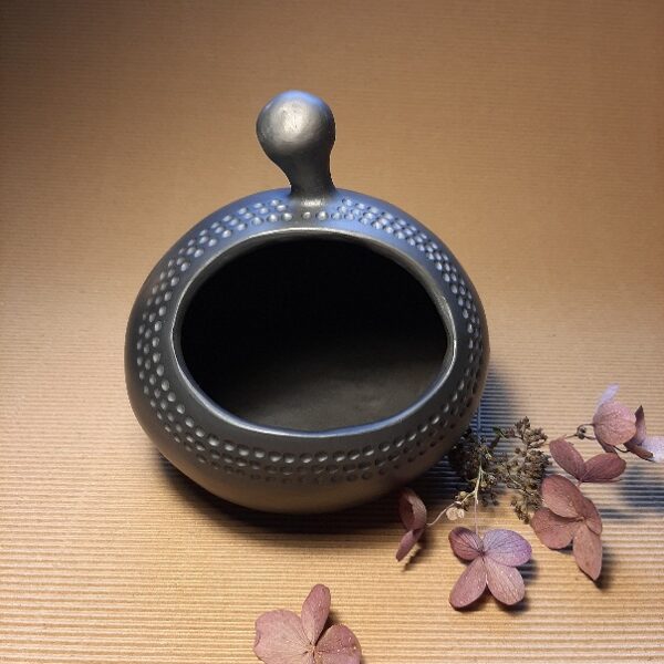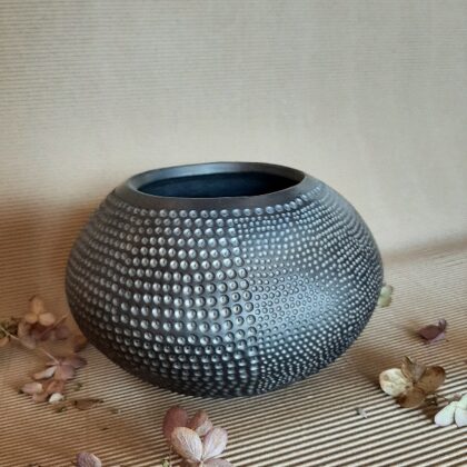 Trauki veidoti no Latvijas sarkanā māla, dedzināti malkas ceplī un cepļa slāpēšanas rezultātā ieguvuši melno krāsu. Bez glazūras. Katrs trauks ir veidots ar rokām, bez podnieka virpas, tādēļ arī tāds ir vienā eksemplārā un unikāls.
